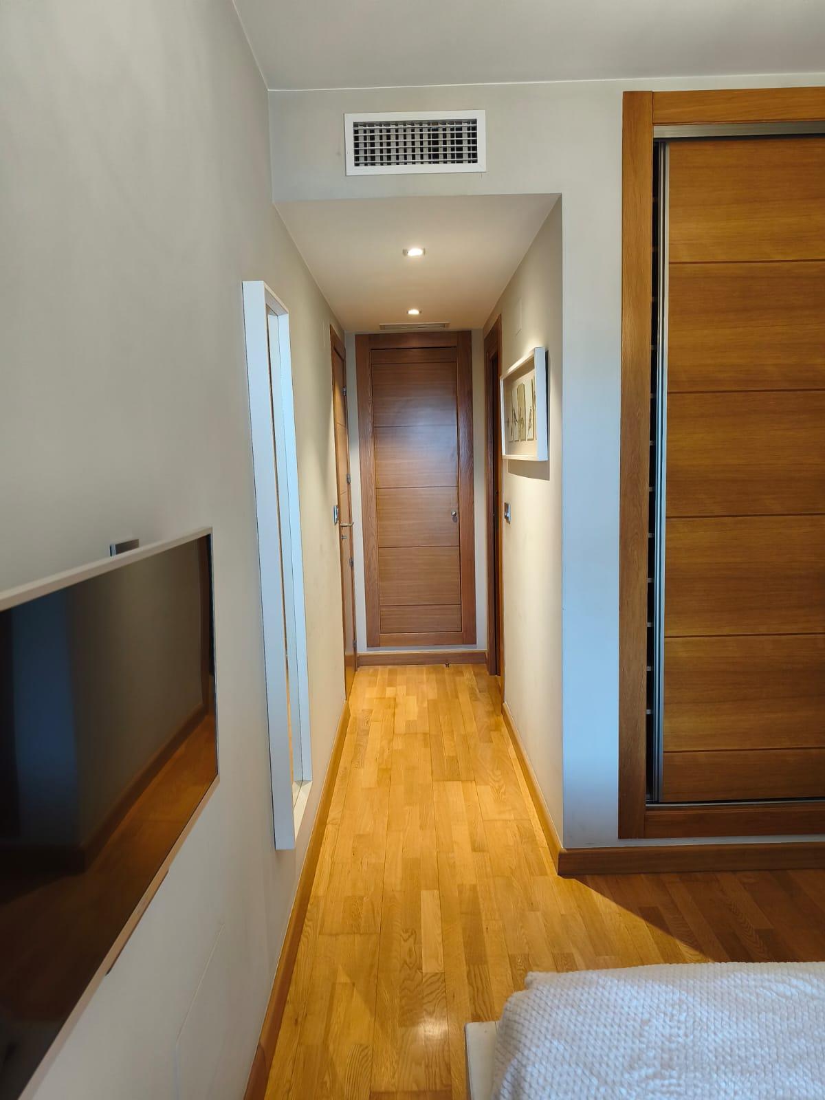Vivienda única en un entorno privado en pleno centro de Murcia, compuesta de 2 dormitorios y 2 baños completos con acabados en mármol travertino, ventanas tipo Climalit, con terraza propia de 16 m2, puertas lacadas en blanco, tarima flotante, acabado de pintura en liso. Dispone de aire acondicionado con bomba de frío y calor Inverter, armarios empotrados con ascensor y plaza de garaje. Un entorno único donde poder vivir en pleno centro de la ciudad pero con la tranquilidad e independencia de un residencial en exclusiva fácil comunicación en todas las dirección, y todo tipo de servicios a su alrededor, dispone en sus bajos de farmacia 24 horas y de hipermercados como Mercadona y Superdumbo.
